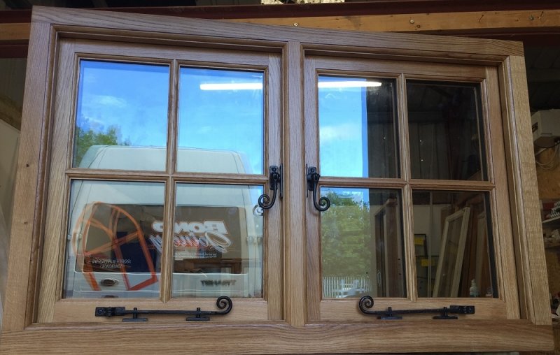 Oak Traditional Flush Casement Window with Traditional Black Monkey Tail Casement Stay & Fastener